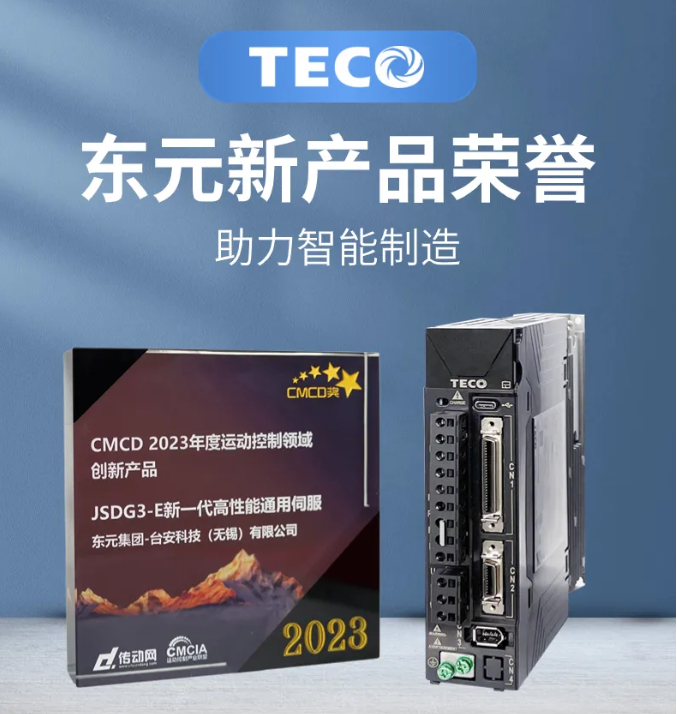 頒獎典禮表彰了伺服、運控/直驅(qū)領(lǐng)域優(yōu)秀企業(yè)品牌、創(chuàng)新技術(shù)、產(chǎn)品、行業(yè)應(yīng)用。其中東元新產(chǎn)品JSDG3-E系列伺服,榮獲【CMCD2023年度運動控制領(lǐng)域創(chuàng)新產(chǎn)品獎】。