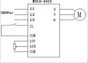 每套設(shè)備使用0.75KW變頻器和11KW變頻器;N310-2001-H1X負責拖動牽引電機帶動牽引輥對吹塑好的薄膜進行牽引;N310-4015-H3X負責拖動擠出機;牽引電機規(guī)格為0.75KW,50HZ,3.1A,1400RPM,帶有減速機;擠出電機規(guī)格為:380V,11KW,22.6A,1400RPM,50HZ,帶冷卻風機,規(guī)格為95W,380V,50HZ,1400RPM;