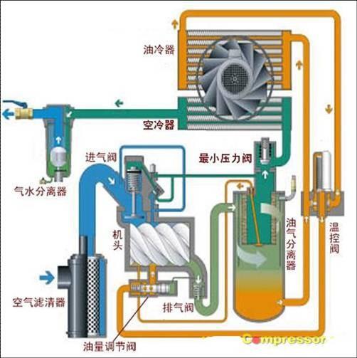 圖 4 螺桿式空壓機(jī)工作原理