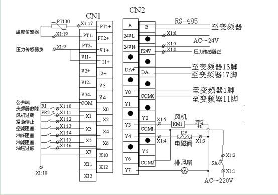 ⑷ 設(shè)備運(yùn)行正常后根據(jù)實(shí)際的用氣要求,調(diào)節(jié)合適的出氣口壓力,并使變頻器運(yùn)行電流波動(dòng)在很小的范圍內(nèi)(10A以下),與電流波動(dòng)相關(guān)的參數(shù)有,控制器P、I參數(shù)及變頻器ON09、CN08、CN15,可視實(shí)際情況調(diào)節(jié)。